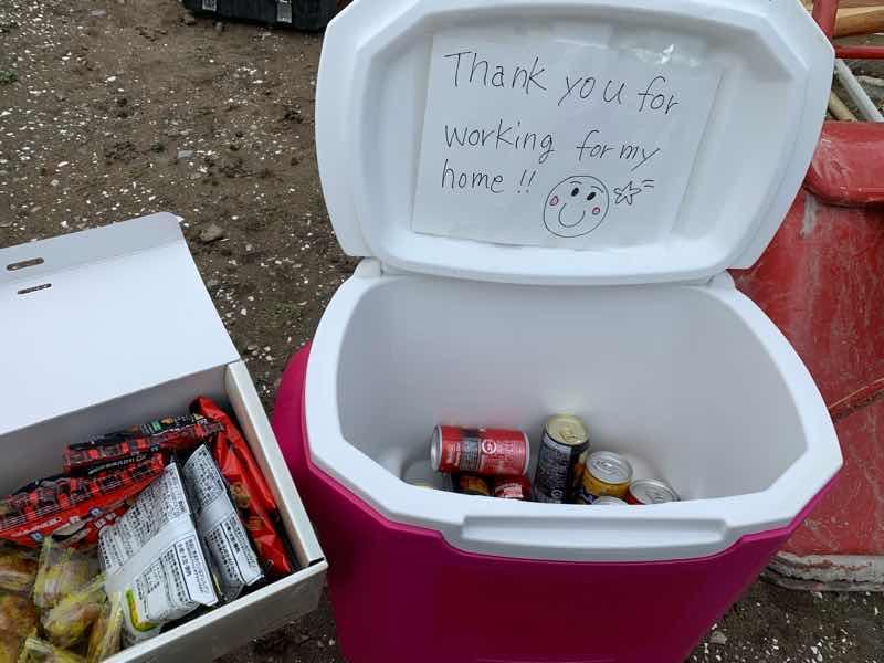 本日は暖かくて過ごしやすいですね(^^) 本日の現場は富津市M様邸新築基礎工事になります。 お客様から、差し入れをいただきました(^ ^) お手紙付きで、皆んなもヤル気スイッチが入ってます! ありがとうございます(^^)